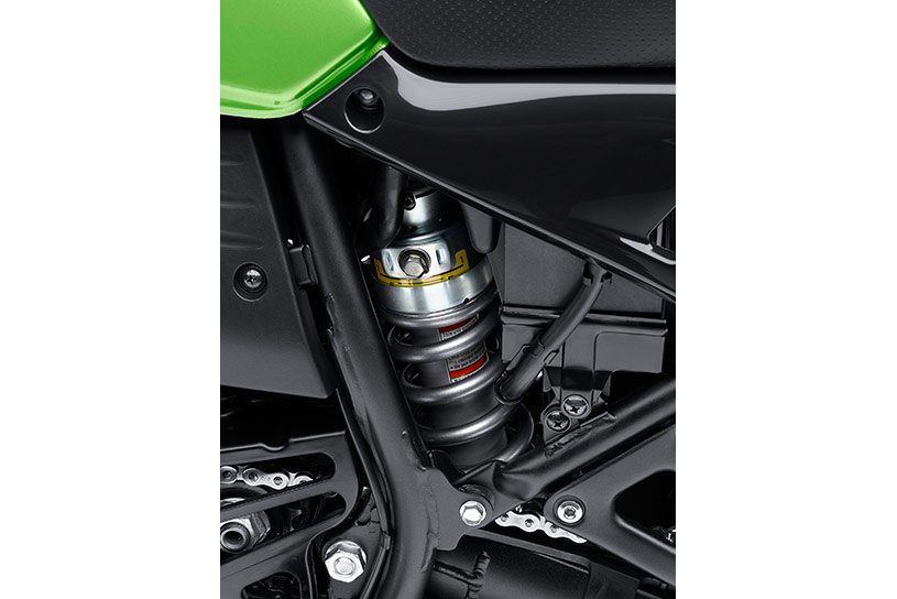 Kawasaki states that the upgraded 41mm forks are 40% firmer with the new springs and rebound damping is firmer by 27%. The Uni-Trak linkage rear suspension now offers 63% higher spring rate while the rebound damping settings are 83% firmer. The five position preload adjustment and four level rebound damping settings have been retained on the Kawasaki KLR650 New Edition.