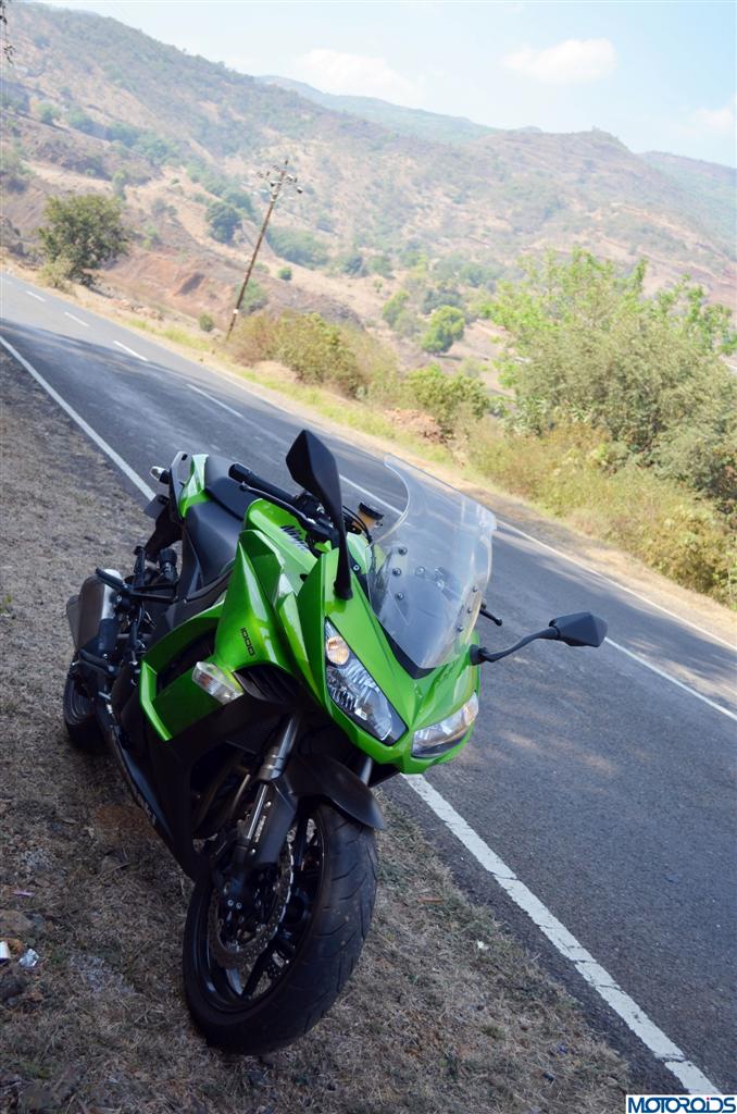 It’s been indeed long since we had a full blown 4 pod litre class motorcycle in the Motoroids stable. This time it’s the 140 bhp mercenary draped in green armour ready to dart into the winds. An exhaustive 300+ kms ride under the hot sun- from the traffic infested Pune roads to the thrilling Mutha ghats and mesmerizing twisties of Lavasa to late night high speed runs on the Pune-Bangalore highway. Gentlemen, it was time to put the 2014 Kawasaki Ninja 1000 under the scanner and paint the town GREEN in envy!