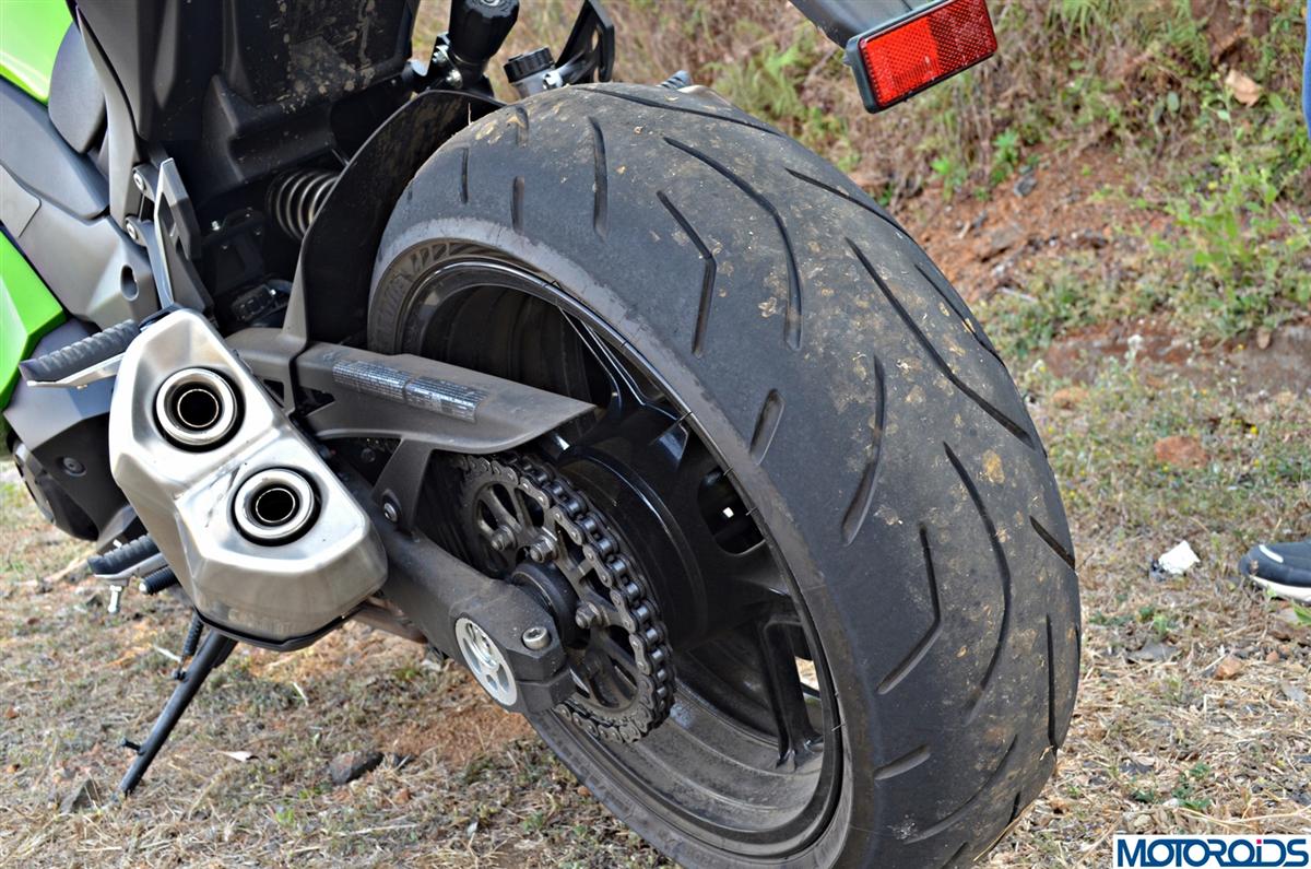 One thing we did notice was the taller sixth gear on the Ninja 1000. We did have the Kawasaki Z1000 (review coming up soon) with us for 2 days prior to riding the Ninja and where the Z1000 had more punch, the Ninja 1000 seemed slight lazy in picking up revs in the top gear. Also with the Ninja 1000 sporting a 39 teeth compared to the Z1000’s 41 teeth rear sprocket- the difference in acceleration was easily evident. But these numbers tilt in favour of the Ninja 1000 when it comes to highway cruising. A taller sixth gear and a smaller sprocket give the Ninja 1000 the long legs for an effortless cruise. The Ninja 1000 could munch miles like peanuts- you could lazily cruise along at 130 kph with the engine revving no higher than 5500 rpm.