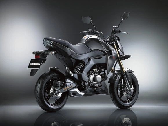 The smallest of the family motorcycle Kawasaki Z series, The Z125/Z125 pro will roll out with a 125cc single cylinder, SOHC 2 Valve, Air Cooled engine with fuel injection spouting a maximum power of 9.5 PS, while fuel tank capacity stands at 7.4 liters. The Z125 has a breakthrough compared with the previous mini moto KSR110 by increasing the displacement from 110 to 125 cc. The Kawasaki Z125 will employ a 4-speed Automatic transmission while the Z125Pro will benefit from a 4 speed manual transmission.