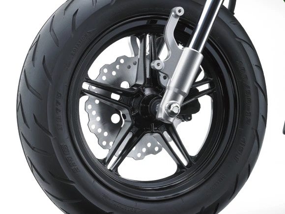 – Wheels Front: 100/90 12 inch Ring size 49J, and rear: 120/70 12 inch Ring size 51L