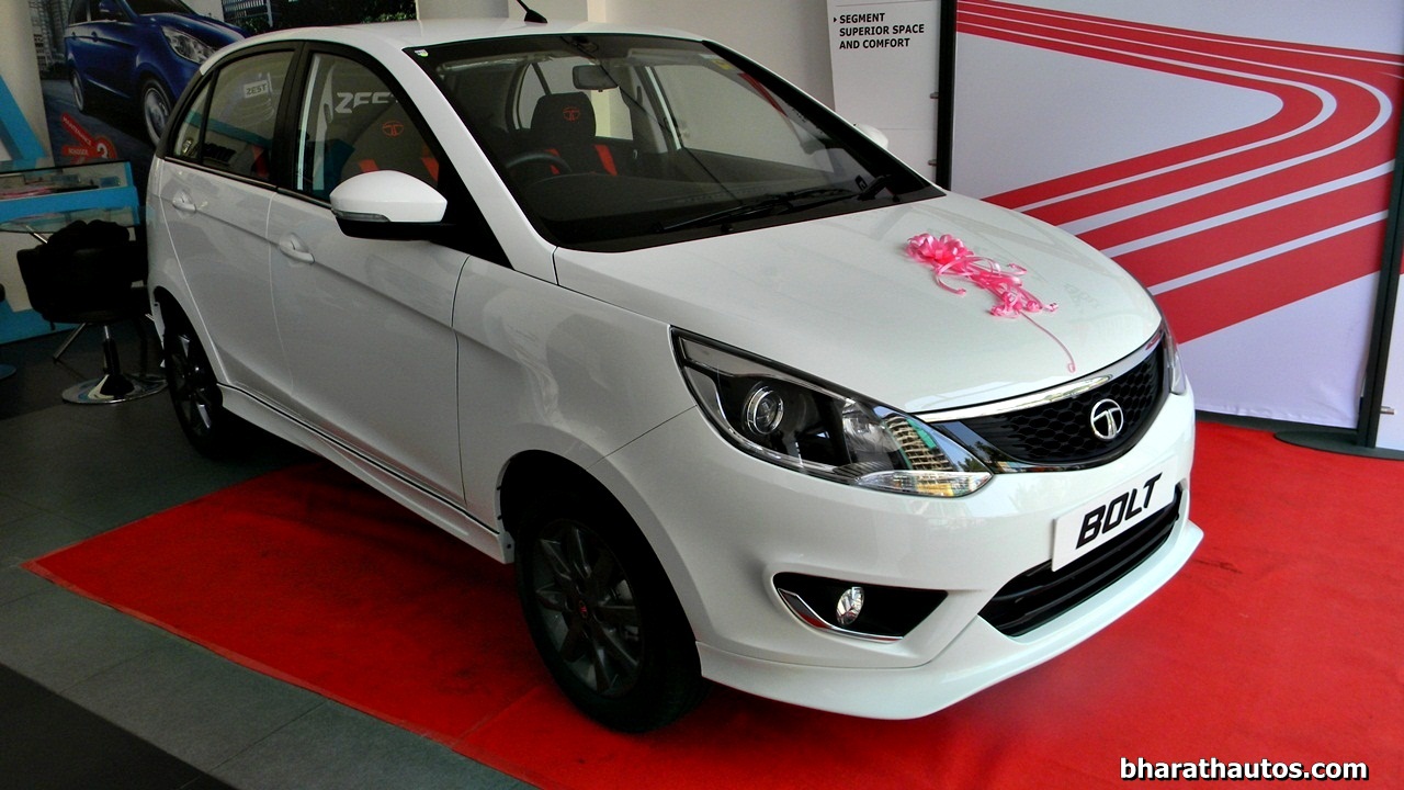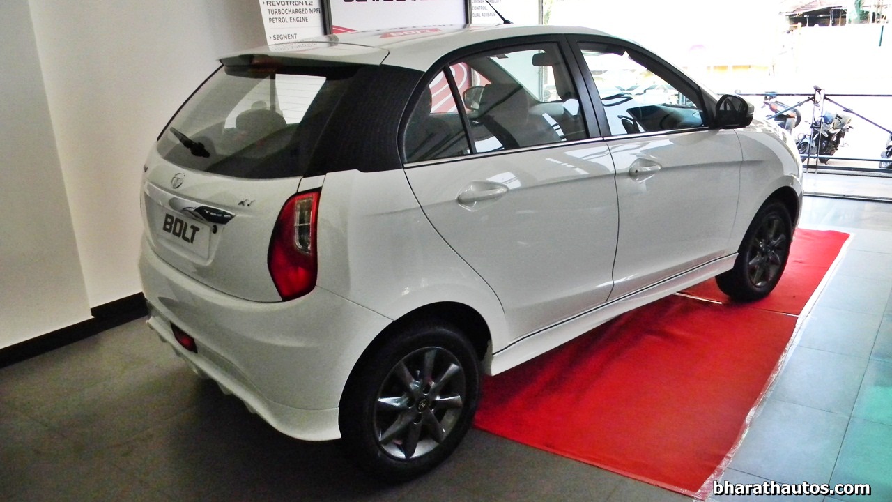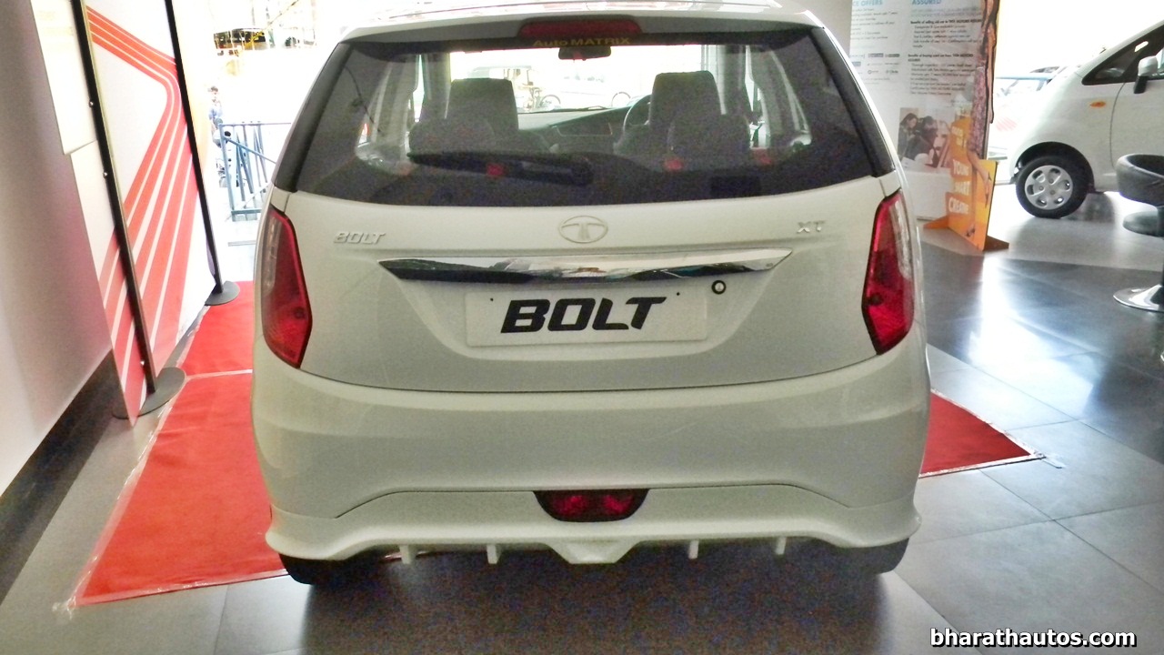 The Tata Bolt hatchback is all set to launch tomorrow. Meanwhile, a subtly kitted up example found its way to a dealer. Finished in white, the body kit adds the usual – a lower lip to the front bumper, side skirts and a rear diffuser-like attachment. Inside, the seats are draped in black, fabric upholstery with red highlights and Bolt logos. To round off the whole package, the alloy wheels also have been re-sprayed in grey. Tata has also previewed this kit in the past in a couple of press images.