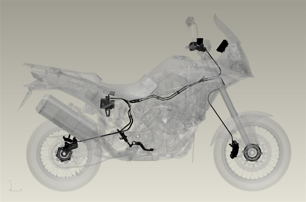 - Additional electronic control of brake distribution prevents the wheels from slipping while braking at lean angles.