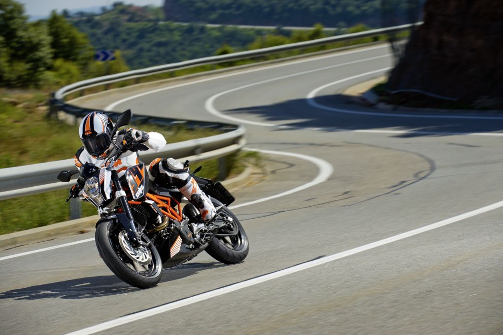 The liquid Cooled 373.2 cc DOHCc engine on the 390 Duke weighs at a low 36 kg. Just like the R15, the Duke 390 also boasts of a forged piston and NikaSil coated cylinder. Lubrication is force fed, with crank case evacuation feature.