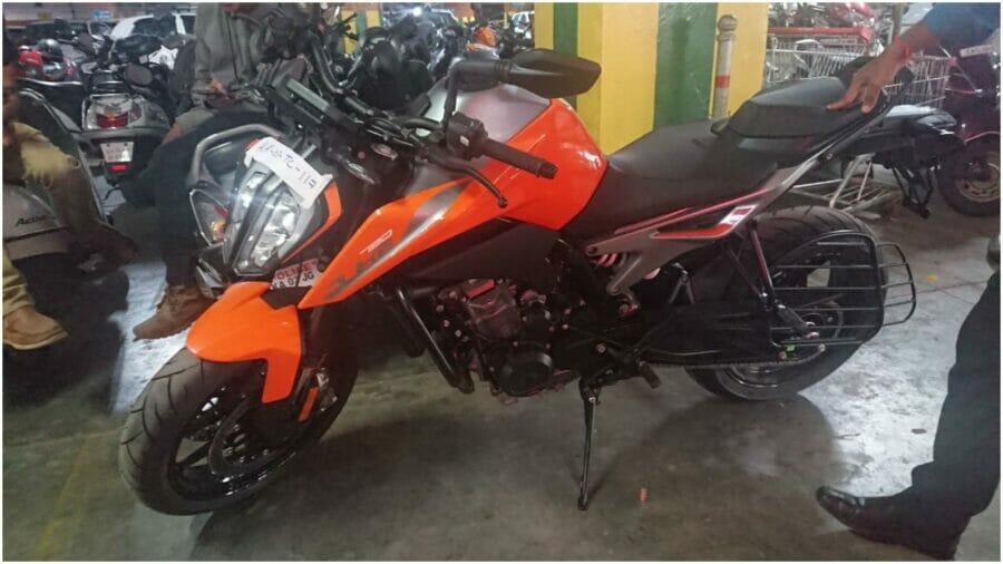 After postponing the launch of the 790 Duke multiple times, KTM might finally launch this mid-range street weapon during the upcoming festive season. Although these reports haven’t been confirmed yet, we now have proof to believe that the bike is expected to launch pretty soon. Recently spotted in a parking lot in Karnataka (with an ugly saree guard), the KTM 790 Duke looks ready to take on the Indian roads. This bike is not only one of the lightest in its segment, but also the most agile, thanks to its compact chassis and the powerful 799cc, twin-cylinder engine. Once launched, the bike is expected to be priced around INR 7.5 – 8 lakh (ex-showroom, India)