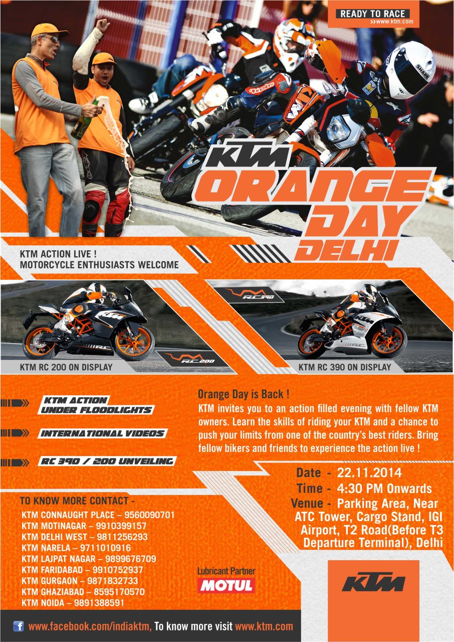 KTM Orange Day coming to Delhi on 22nd November, 2014