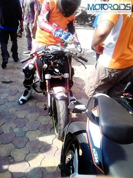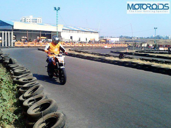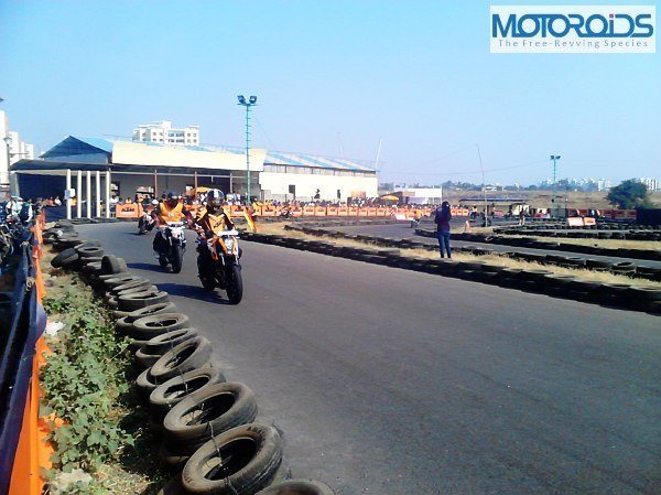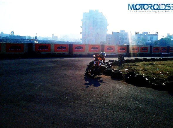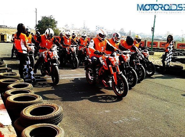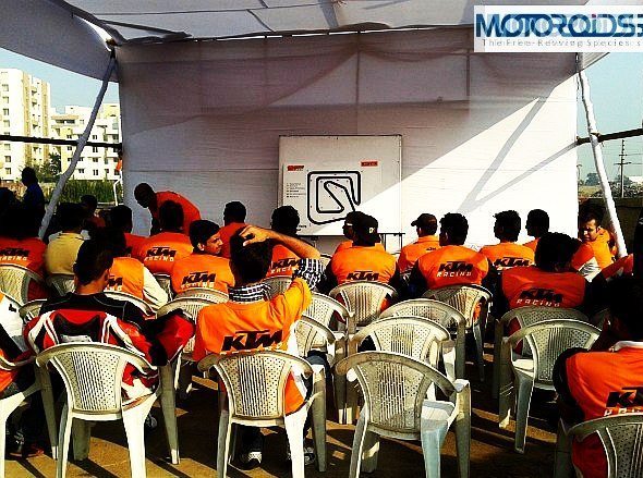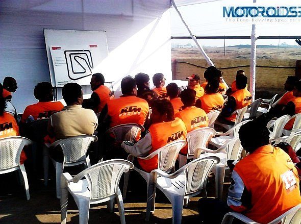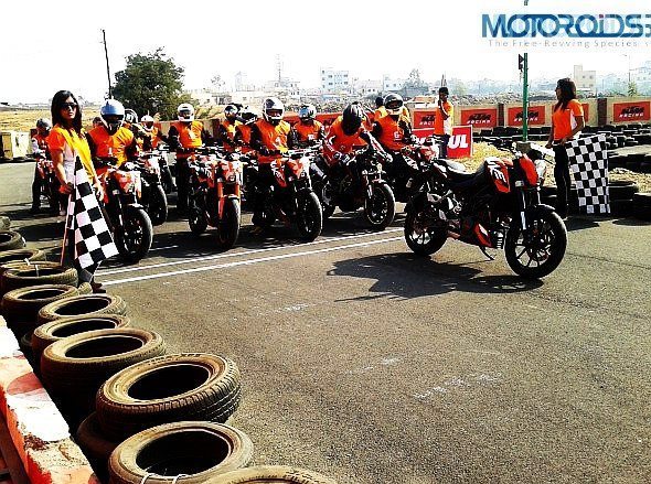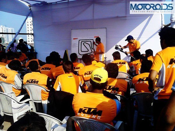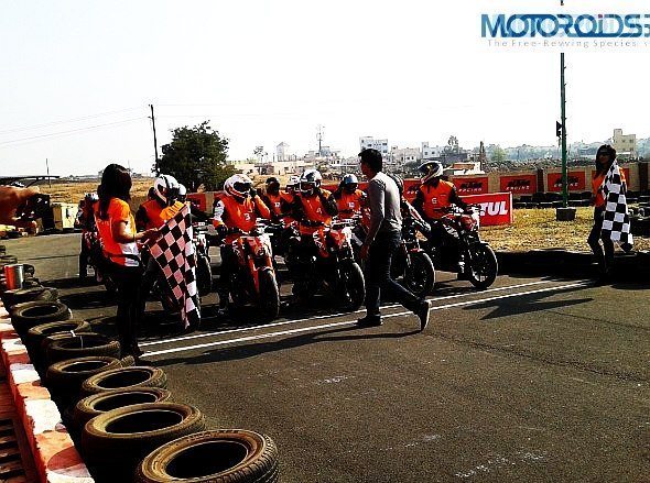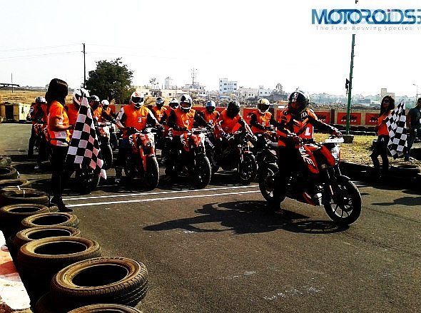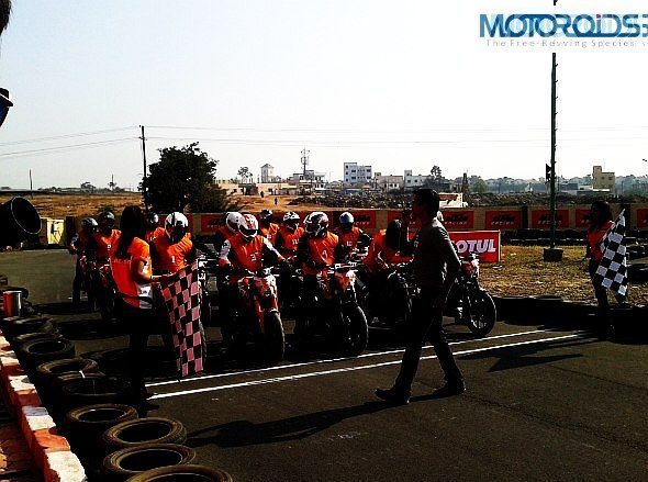 A good helmet with visor, elbow guards, knee guards and riding gloves were made mandatory for the participants. This has to be the best bit (after pit girls) about the KTM orange day!