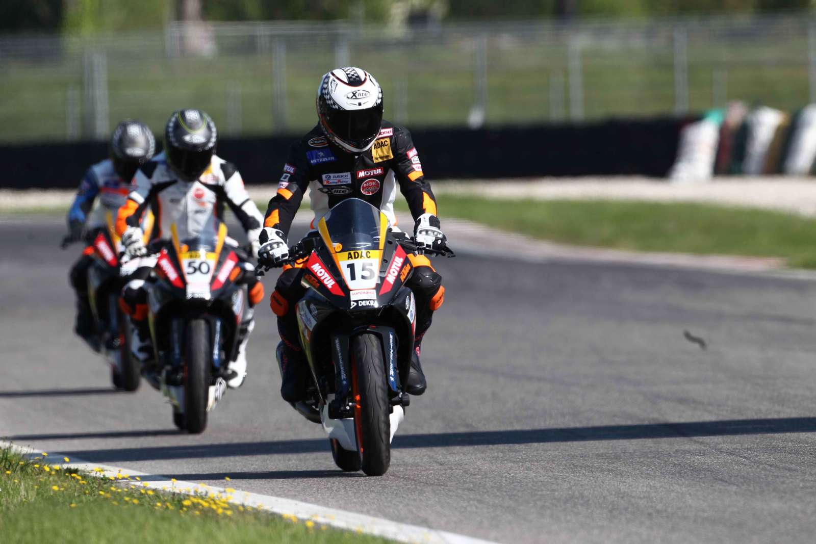 The race spec KTM RC 390 gets a bigger front brake disc (from 280 to 320mm), a WP fork and a WP fork leg. The introduction round of the ADAC Junior Cup by KTM is a three days affair involving youngsters making the most of there riding skills. The IDM Superbike racers Dario Giuseppetti and Michael Ranseder are the instructors for this event. These KTM RC 390 Cup bikes were built and prepared at the KTM factory in Mattighofen The bikes ride on Metzeler Sportec tyres of new M7 specification.
