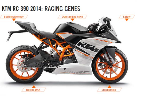 In essence, the KTM RC390 would be a faired variant of the 390 Duke, which means that the RC 390 will come with a full front fairing and slightly sportier ergonomics. As the spec sheets reveal, the KTM RC 390 would boast of a max power of 43 hp and the bike will have a dry weight of just 147 kgs. It doesn’t take a great mathematician to calculate that the RC390 would boast of segment leading power to weight ratio. It is very probable that the RC390 would have a stiffer suspension than the 390 Duke, which should help towards better handling and track manners. What makes the deal even sweeter is the fact that  local manufacturing and high parts sharing with the Duke will enable Bajaj-KTM to price the upcoming model ultra competitively. The KTM RC390 price in India is expected to be around INR 2.20 lakhs.