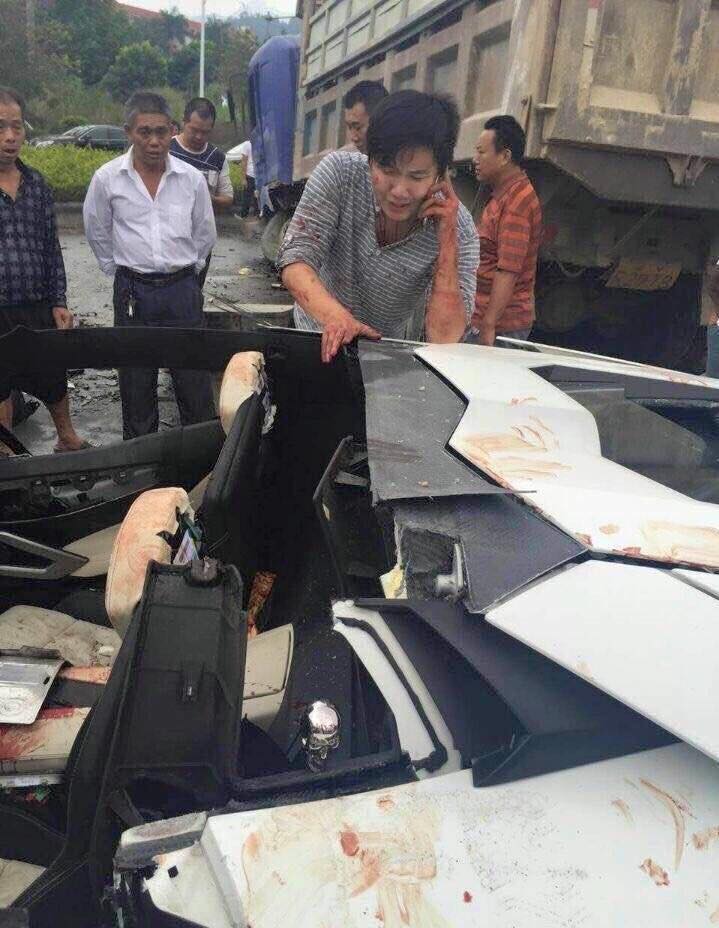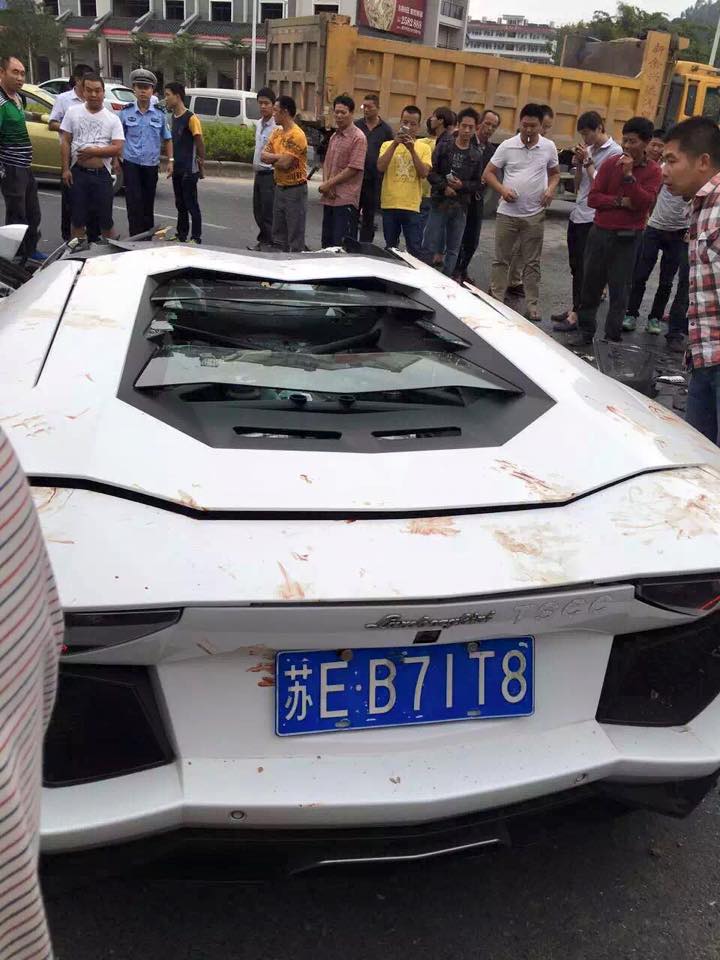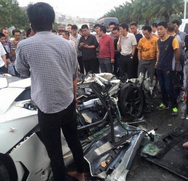 A Lamborghini Aventador was totaled when it was crashed into by an oncoming dump truck. The ill-fated incident, which occurred in the Guangdong province of China, saw the end of the white Aventador which was damaged beyond repair. The front portion of the car was damaged to such an extent that it could not be recognized.