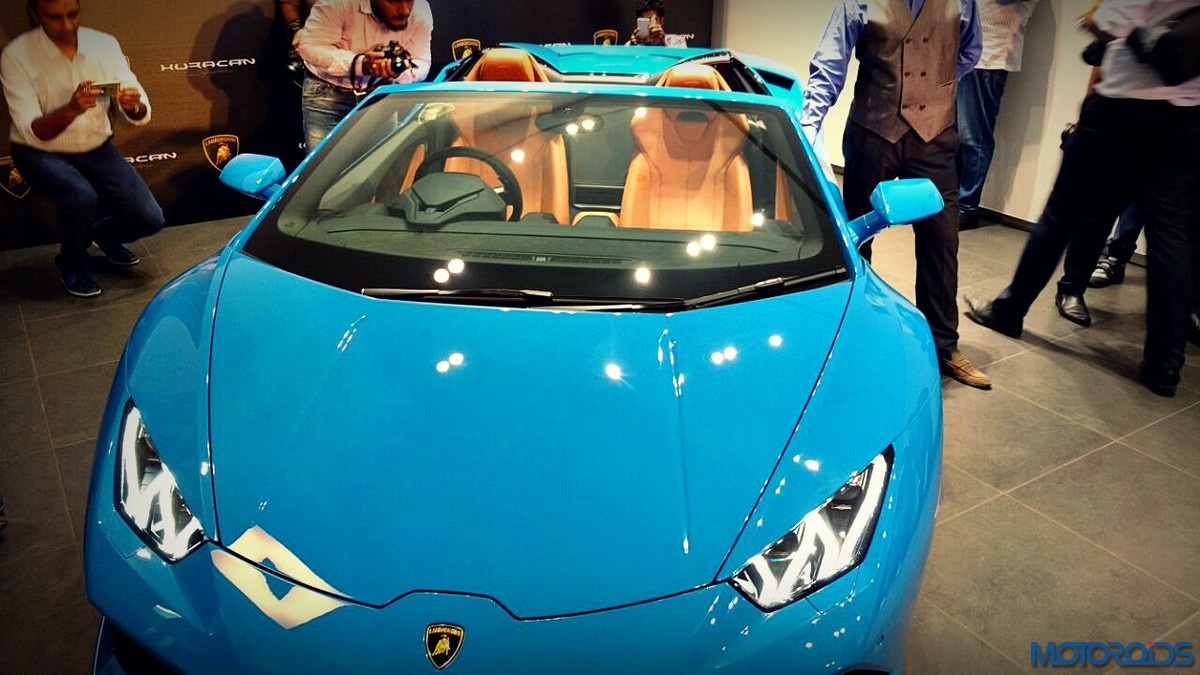 The Lamborghini Huracán Spyder has been launched in India today, with prices starting from INR 3.89 Crores (ex-showroom Delhi). Based on the same, albeit more stiffened hybrid (carbon fiber + aluminium) chassis of the Huracan coupe, the Huracan Sypder’s chassis is 40% more torsional stiffness as compared to its spiritual predecessor, the Gallardo Spyder. The lightweight, electro-hydraulic fabric roof, available in three different colors- black, brown and red, can be lowered with a push of a button in 17 seconds and up to a driving speed of 50 km/h.