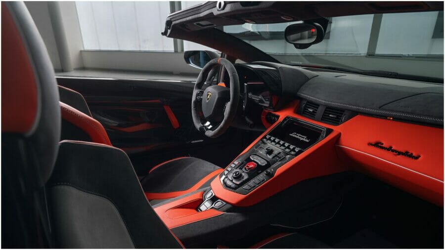 Keeping the car from taking off at high-speeds is a complex active aerodynamic system called the Aerodinamica Lamborghini Attiva (ALA) which is also seen on other Lamborghini cars such as the Huracan Evo and Huracan Performante. This system works to provide the least drag or maximum downforce to each side of the car depending on the conditions of the road. Removing the roof on this car represents a slight increase in the overall weight of the car which has gone up by 50 kilograms when compared to the Nürburgring record-breaking Aventador SVJ Coupé.
