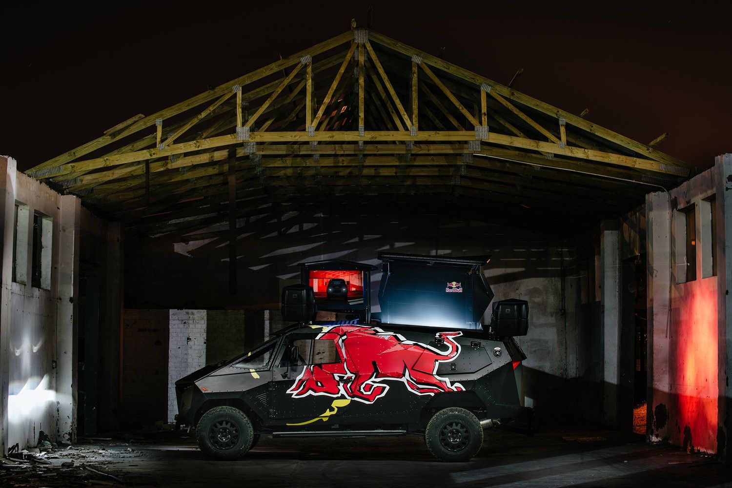 But what makes it the ultimate party machine is what comes from the inside. A DJ booth rises from the top of this party machine along with a flat-screen TV and set of speakers to get the party started anywhere, anytime. We really don’t know what’s going on the inside as Red-Bull has not revealed any images of the interior and we can only let our imagination loose and believe it’s reserved for the after party for special guest of the DJ. That also explains the lack of windows on the party machine.