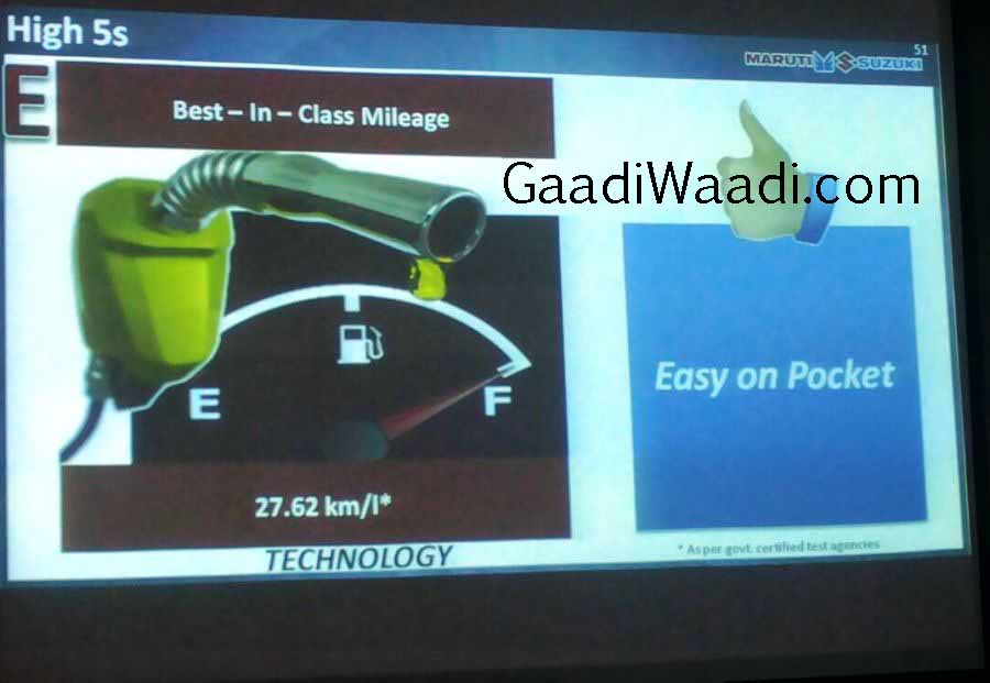 Maruti Suzuki is on the brink of launching one of the most anticipated cars of 2015. The Maruti Suzuki Celerio diesel is set to ride on the waves of great fuel economy. This frugality, plus an attractive price tag could write a new success story for the company. As you can see in the above image, the Maruti Suzuki Celerio diesel will come powered with a rather small 793cc 2-cylinder, turbocharged diesel engine. This engine will make 47.65 PS of power at 3500 rpm and 125 Nm (that’s why the ‘DDiS 125’ badge) of torque at 2000 rpm.