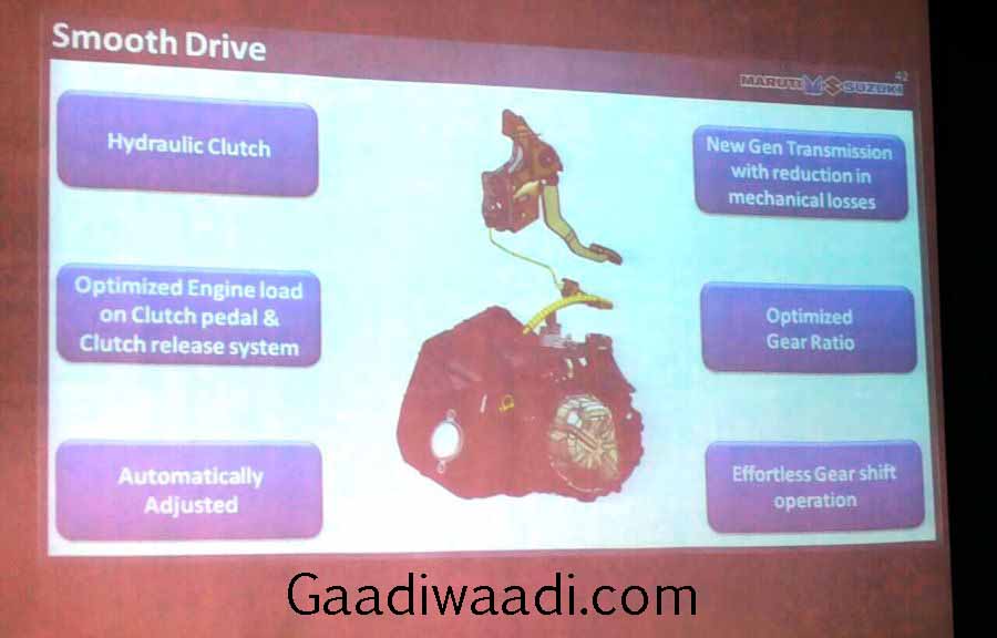 Even with just two cylinders, this unit manages to produce 0.16 Nm of torque per cc of engine displacement. The diesel engine found in the Swift makes 0.15 Nm of torque per cc of its 1.3-litres of displacement. This thanks to the equally tiny turbocharger that’s been fitted to the Celerio diesel. This 793cc oil burner is an all-aluminium unit (89 kg) and thus weighs much less than cast-iron ones found in other cars. Maruti Suzuki has also endowed the Celerio diesel with an hydraulic clutch system, not the usual cable-operated mechanism.