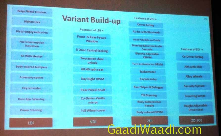 Once launched, the Maruti Suzuki Celerio diesel will deliver 27.62 km/l. Of course, this number may vary in real-life conditions. That said, the DDiS 125 powered Celerio could become one of the most frugal cars in India. Just for comparison, the Chevrolet Beat diesel is rated by ARAI at 25.44 km/l. The Maruti hatch also offers more in terms of boot space (235 litres) over the Chevy Beat (170 litres).