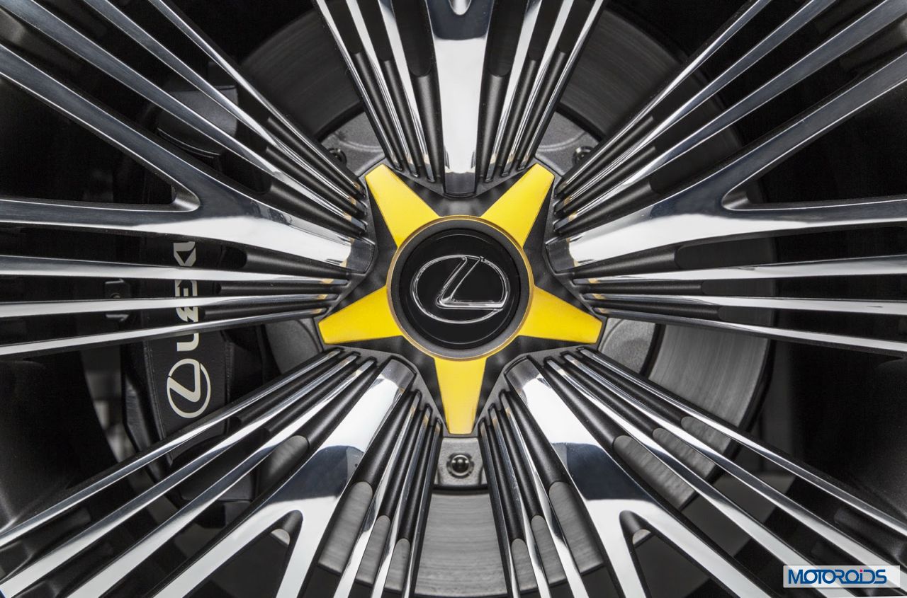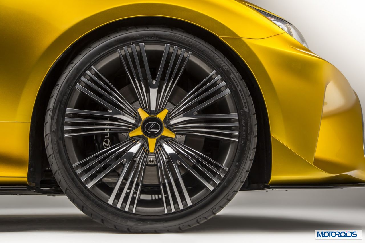 The LF-C2’s profile has a defining beltline emanating from the car’s front bumper fin to the steeply-angled A-pillar. Vents behind the door send direct air to the rear brakes. The rear end of the LF-C2 is highlighted by Lexus L-shaped taillight bulbs, an exhaust system with chrome-covered quad exhaust tips, and an expressive new rear diffuser design. The concept’s impactful stance is planted by five-spoke 20-inch alloy wheels.