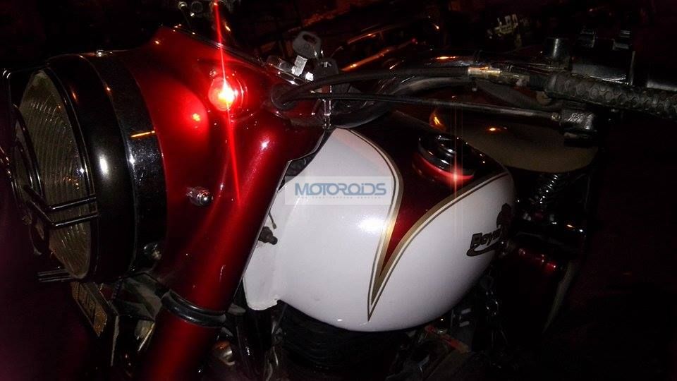 Of late, we’ve been featuring a lot of modified motorcycles and cars (well, more bikes than cars) on Motoroids India. And worth a mention here is that most of the modified bikes we’ve come across are based on a Royal Enfield motorcycle. Nothing too surprising, considering that Royal Enfields have an old world charm about them right from the moment they roll out of the production line. And the fact that there basic design already mimics that of the bikes of the yore make it even easier for an amateur bike stylist to do a fairly decent job of customizing a motorcycle. (Do you also have a custom bike/car? What are you waiting for? Send us the images and details at [email protected]) One such mildly modified Royal Enfield is the 1994 Bullet you see here. Based on arguably the most popular Royal Enfield model of the last millennium, this lightly modified Royal Enfield Bullet motorcycle belongs to our friend Sagar Shendkar, who inherited this 1994 Royal Enfield Bullet from his dad and bestowed it with a tasty paint job. The paint job successfully gives the bike a unique identity. Oh and lest we forget, the bike also gets a split spring loaded seat arrangement and dual fuel filler cap, which further amplifies the ‘classic’ look of Sagar’s steed.