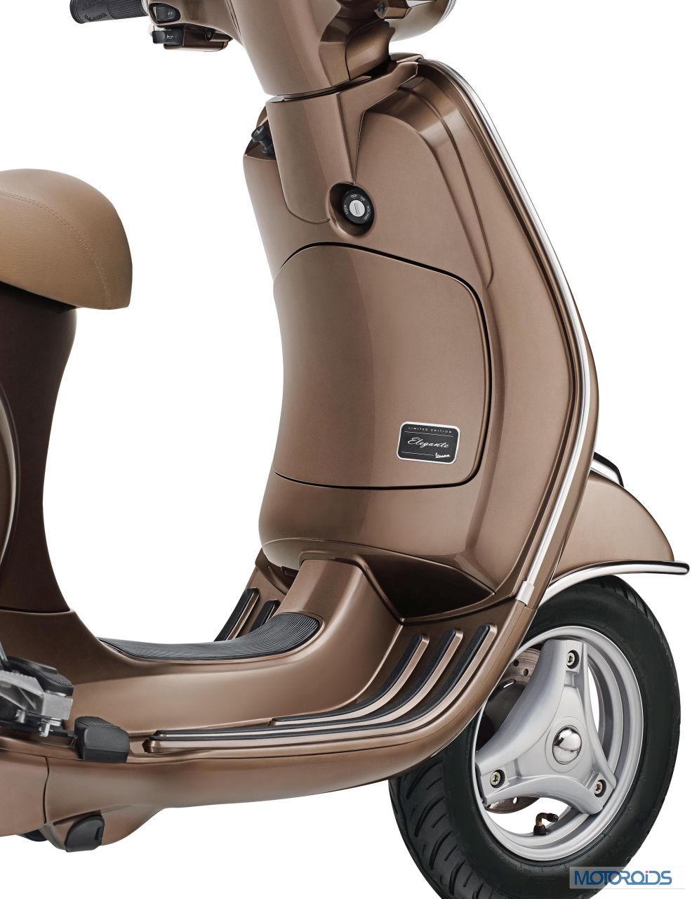 Piaggio Vehicles Pvt. Ltd. launched its new limited edition “Vespa Elegante” scooter at a price of Rs. 78,999 (Ex-showroom, Delhi). Targeted at the discerning youth of today, who seek a differentiated, stylish premium product, the Vespa Elegante will be available in two new metallic colors, one inspired from the brown clays of Seina Region in Italy, called the “MARRONE CRETE SENESI” & “BIANCO PERLA” inspired from the exquisite white pearls from the sea.