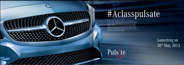 Mercedes-Benz India is surely serious with the marketing of the soon to be launched car. The car maker recently launched a major digital media offensive aimed at creating a buzz around the launch of the New A-Class. Mercedes-Benz India also launched a unique online contest for the launch of the A-Class luxury compact car. The contest gives the winners a chance to keep a Mercedes A-Class for a complete year or a chance to party in Ibiza. The contest required uploading one’s favorite party photograph, tagging #Aclasspulsate. Mercedes-Benz is also running the A-Class campaign in association with India’s leading multimedia youth platform, MTV.