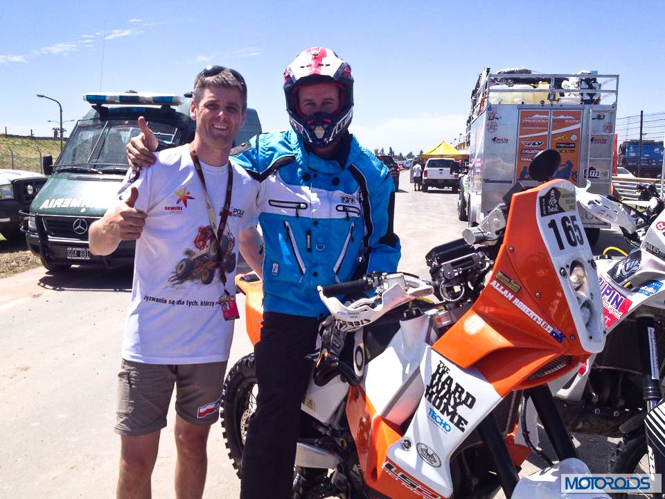 After five years, the Dakar 2014 rally started. Among 431 competitors (174 motorcycles, 147 cars, 70 trucks and 40 quads) of the Dakar 2014, there is a KTM 450 Rally with No. 165 emblazoned on it. This is the bike Allan Roberts rides in his first Dakar. This is Robbo!