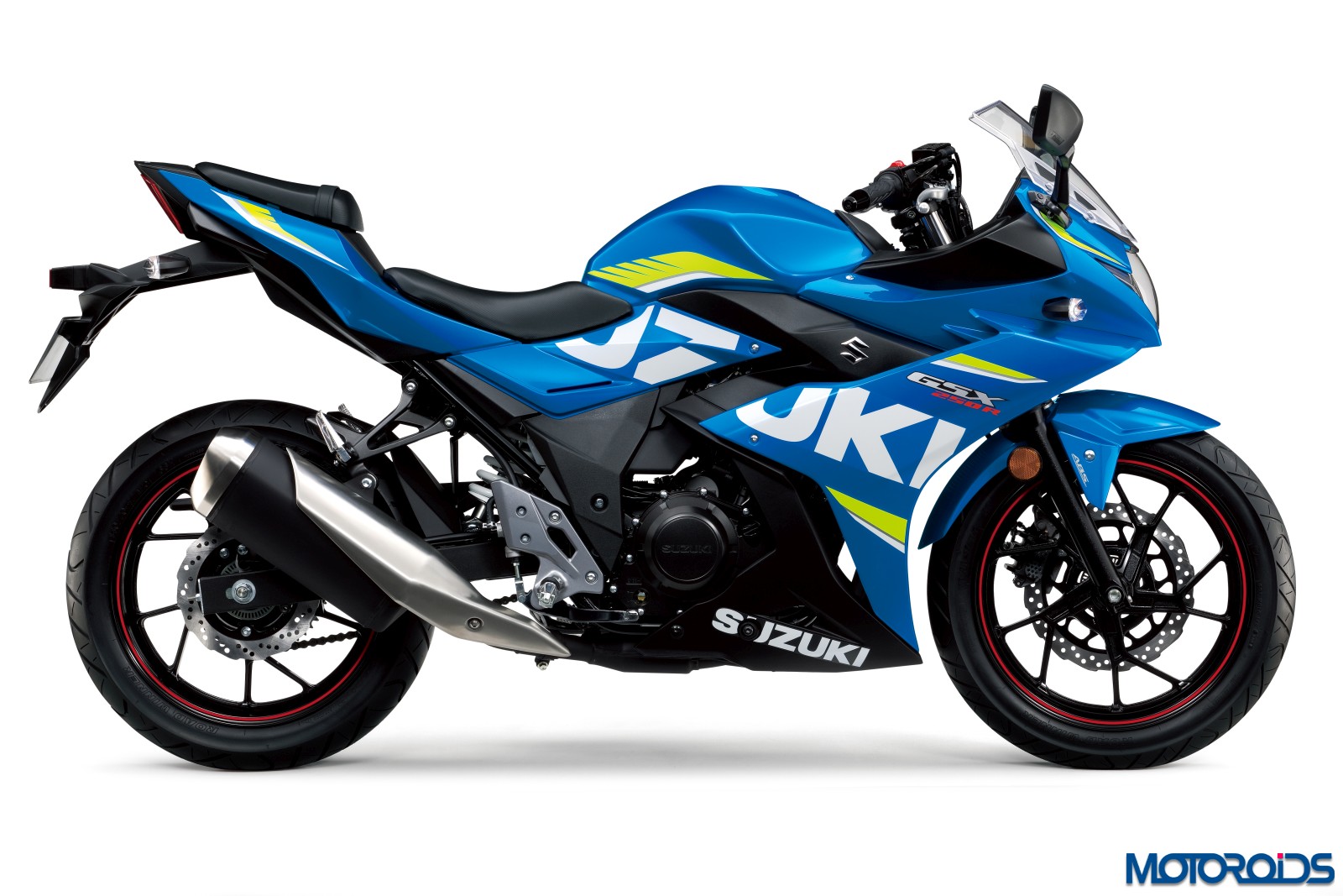 The headlight on the GSX 250 is accompanied by LED pilot lamps on either side while the tail light is a LED unit. The GSX250R features a reverse-lit LCD instrument panel. Readouts include the speedometer, tachometer, gear position and RPM indicator, odometer, dual trip meters, fuel gauge, average fuel consumption and oil change timing indicators, and a clock. The motorcycle gets 10-spoke wheels, petal-type front and rear disc brakes, and an Anti lock Brake System (ABS) made by Bosch.