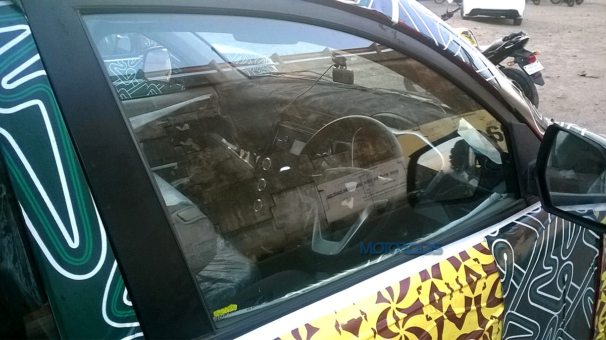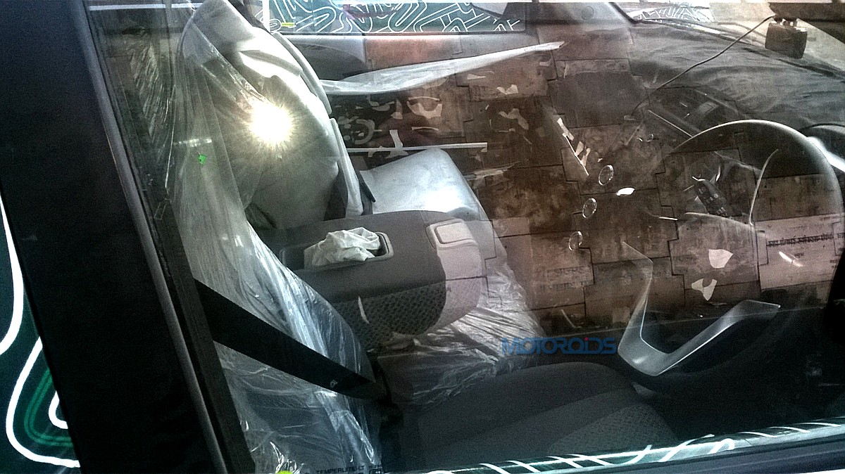 Days before its scheduled launch on 15 January, the interiors of the highly anticipated Mahindra KUV100 has been spied undisguised. The highlight of the dashboard has to the centre console mounted gear lever, which has been positioned there to make way for the middle occupant of the first row. That’s right; as reported earlier the KUV100 will get an unique 3+3 seating layout. The front passenger seat will get an extension; the foldable backrest of which will also double up as a central armrest when not in use.