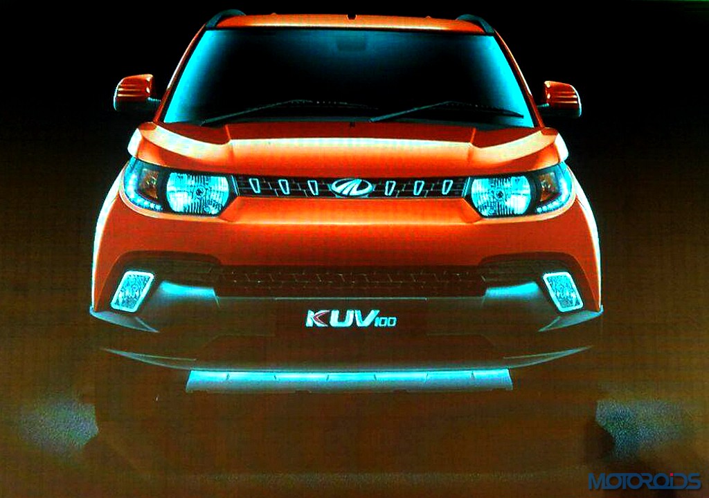 The Mahindra KUV100 compact SUV has been revealed today through official sketches. The name, pronounced as KUV ‘1 double Oh’, stands for “Kool Utility Vehicle”, while the numeric ‘100’ represents the pecking order of the series which comes in below TUV300 and XUV500. Aimed squarely at the youth, the KUV100 will be positioned below the TUV300. The Mahindra KUV100 will be launched on January 15, 2016, at the manufacturer’s Chakan plant near Pune, while bookings will commence from December 19.