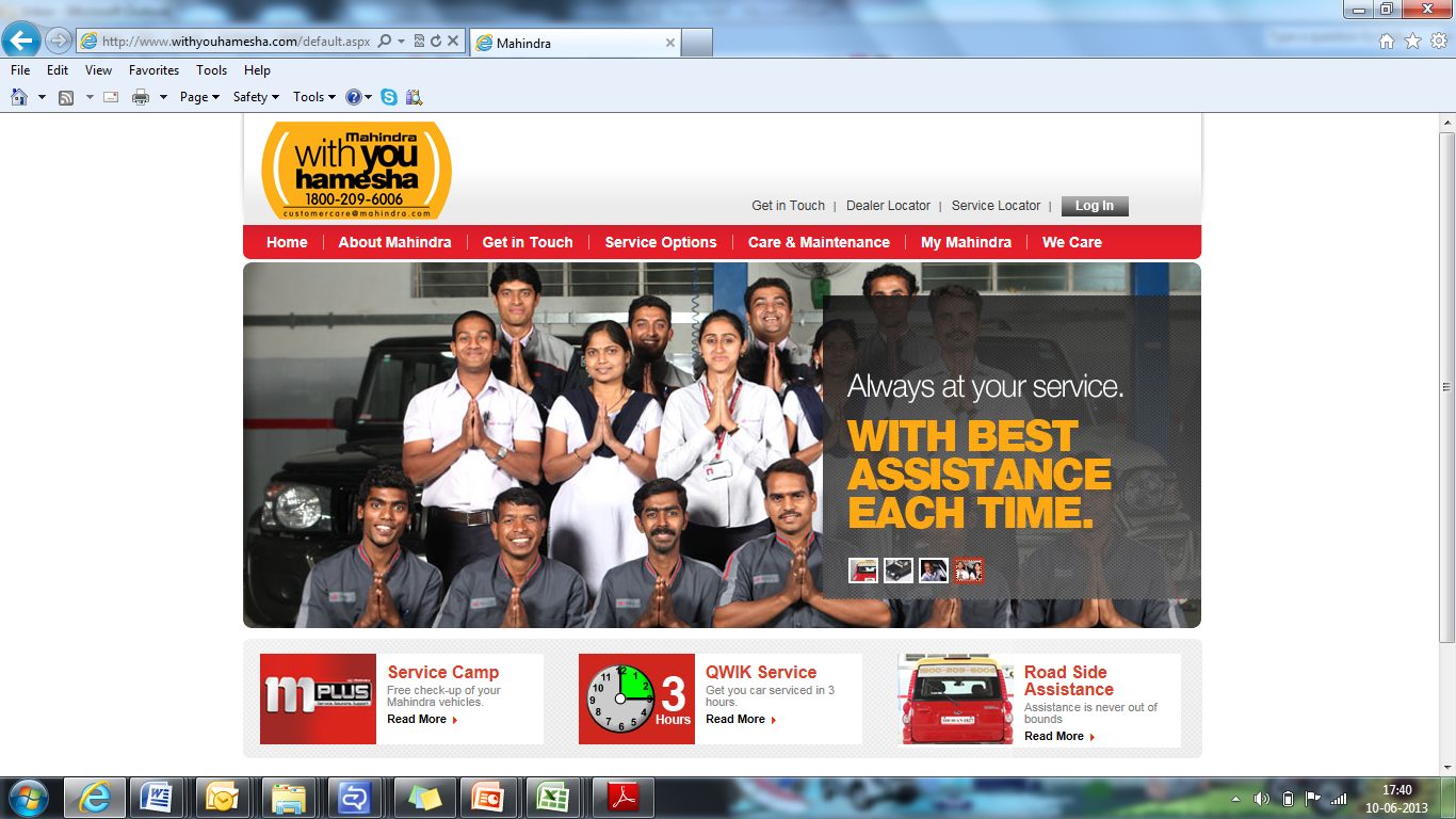 Designed and developed to increase transparency and create awareness amongst the customers about the various customer-centric service initiatives and offerings, www.withyouhamesha.com is a one stop service information repository. To further enhance customer experience, the My Mahindra section provides a world of class leading features and privileges to Mahindra owners. In addition to viewing their vehicle service history, customers have the option to rate the service advisors who would have attended their vehicles at the workshop. This is an industry first initiative. Further, the service cost estimator is expected to bring in transparency as it provides the estimated cost for parts and labour for the scheduled services. On the convenience front, customers can set and receive personalized reminders about their upcoming service/PUC/insurance/license renewal or view vehicle service history details, besides offering a wide range of information on service network, vehicle care, maintenance and value added services.