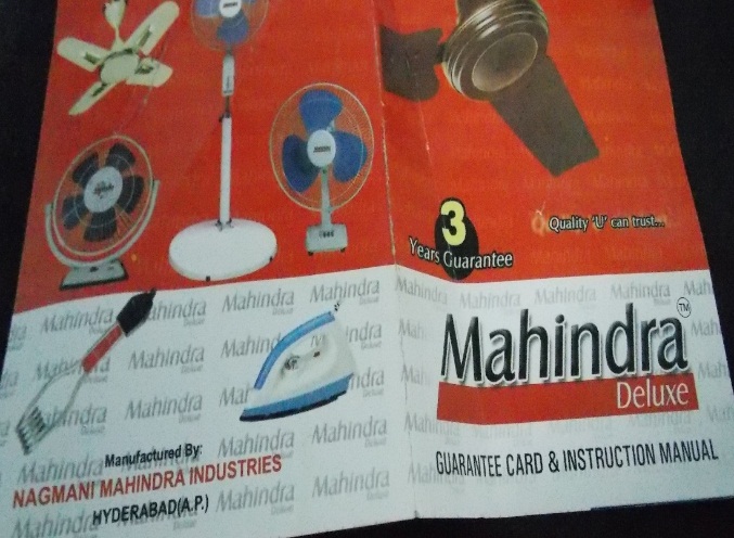 • Trading under various names such as ‘Mahindra Industries’, ‘Mahendara Industries’, ‘Mahindra Electrical’, ‘Nagmani Mahindra Industries’ etc., in respect of ceiling fans.
