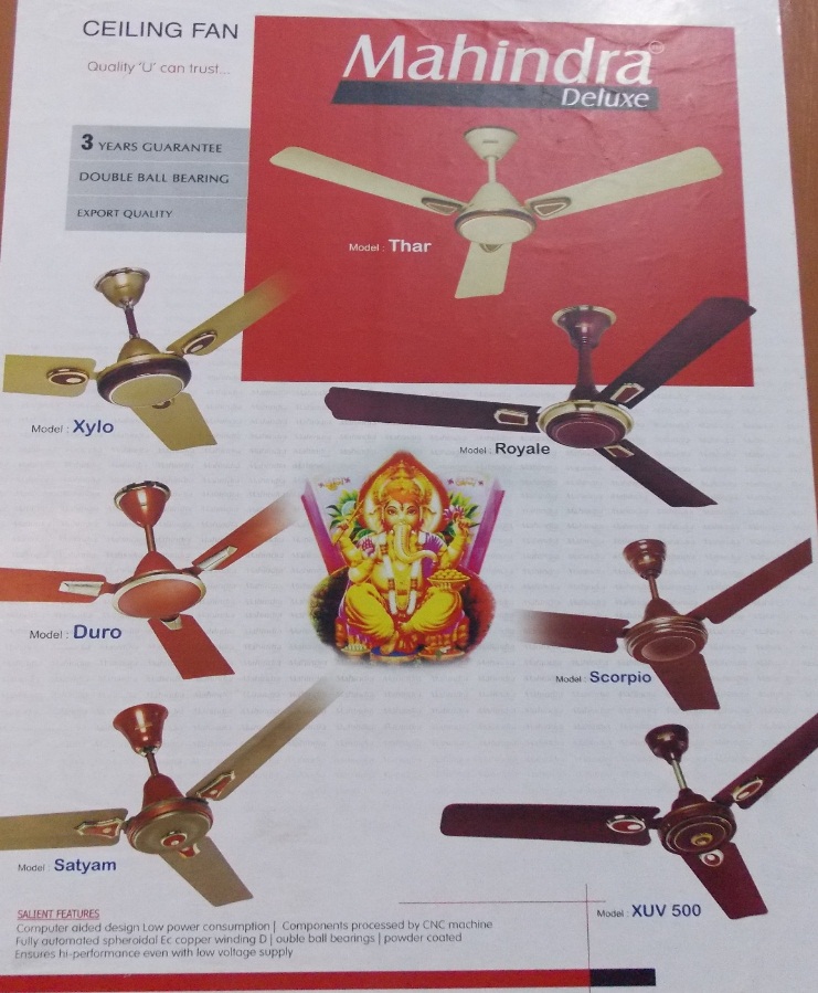 • Using Mahindra’s product brands, viz. Satyam, Duro, Scorpio, Rise and XUV500 as model names for its Mahindra Deluxe range of fans.