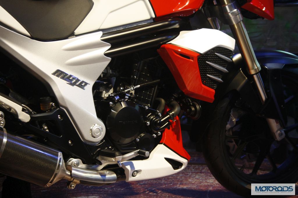 Powering the new Mahindra Mojo 300 is a 300cc, single cylinder, fuel injected motor that could have a max power of around 33 PS. It may be noted that unlike the Mojo prototype that was shown at 2012 Auto Expo, the latest model gets a new engine that has been completely developed by Mahindra Two Wheelers. Suspension duties on the upcoming Mahindra Mojo 300 are courtesy upside down telescopic forks up front and a monoshock at the rear. Braking comes from disc brakes on both wheels and the bike could come with soft compound tires.