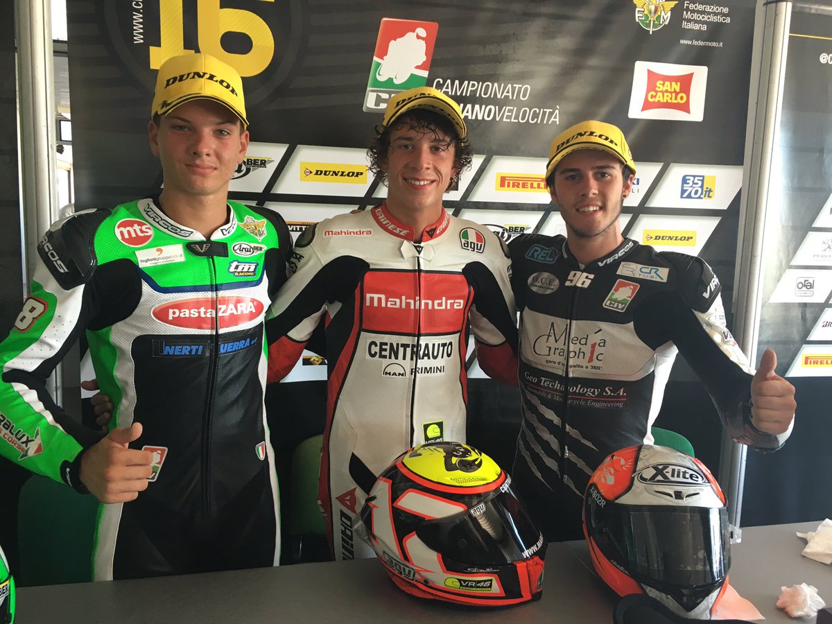 Mahindra Racing rider Marco Bezzecchi won both CIV races at Misano this past weekend. Bezzecchi was a wild card entry in Round 5 and 6 of the Italian National Motorcycle Racing Championship. He completed 16 laps and crossed the finish line in less than 28 minutes and 8 seconds in both the races, with the fastest lap time of 1’44.141.