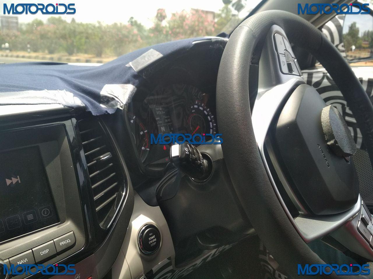 Update 3: We’ve received more spy images of the upcoming Mahindra S201 courtesy our reader, Naveenkumar Dharmar. The latest spy images reveal the interior of the upcoming Mahindra S201. As seen in the images, the upcoming Mahindra S201 will feature a touchscreen infotainment system, and a Push Start/Stop button. The gear-stick also reveals that the S201 will feature a six-speed gearbox. Check out the latest spy images below:
