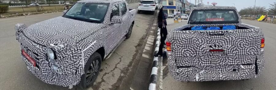 The pickup is still heavily camouflaged on the outside but inside, it looks very familiar. The design of the dashboard looks almost identical to the Scorpio N. It gets the same layered layout with horizontal air vents and a touchscreen placed in the center. The steering wheel is identical three spoke unit with mounted controls, and the overall cabin feels more SUV-like than commercial.