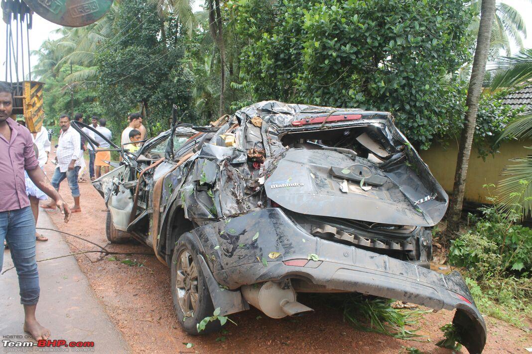 The XUV500 was left in tatters, with the roof caving in lethally, but one also has to consider the near 100 kph speeds . In fact, according to the poster, even all the driving aids, which include ABS, EBD and roll over mitigation didn’t work. The tyres were also apparently new, with just 8000 Km on them.