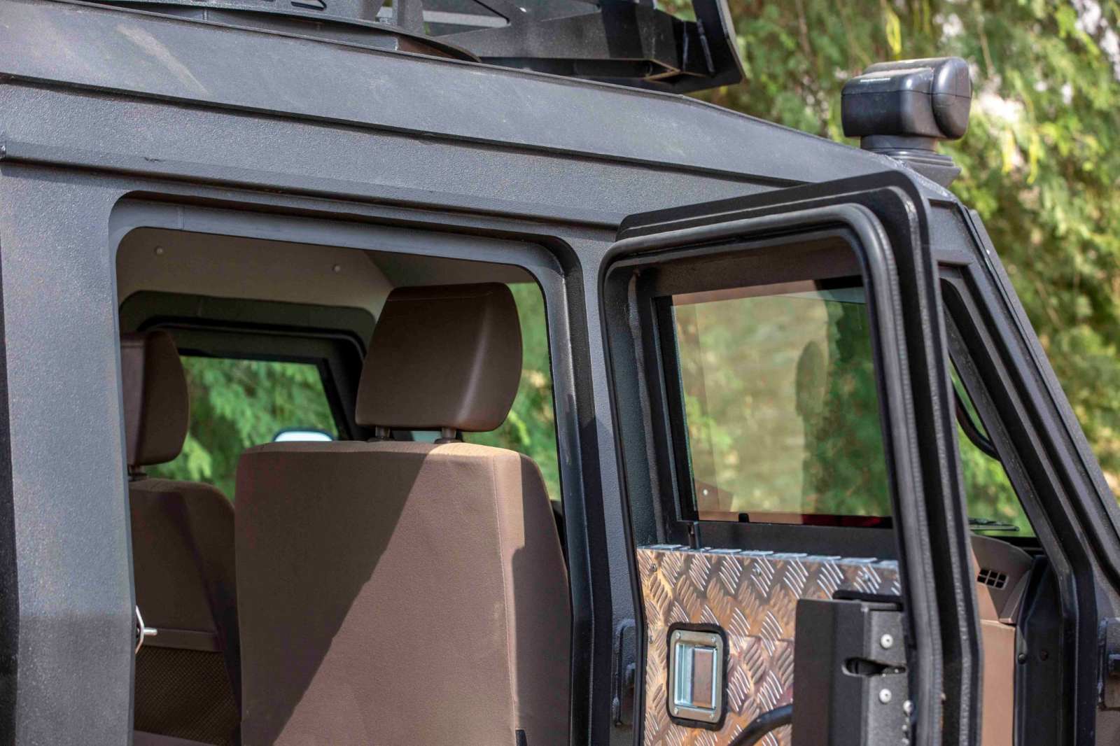 Featured here is the Armoured Specialist Vehicle Pickup which is offered in Light Armoured Vehicle (LAV) and Light Tactical Vehicle (LTV) versions. Under the ammo-proof shield is a donor vehicle whose panels was replaced with a new 360-degree ballistic protection shell providing the perfect solution for defence, paramilitary and police forces operating in inner-city and off-road rough terrain environments.