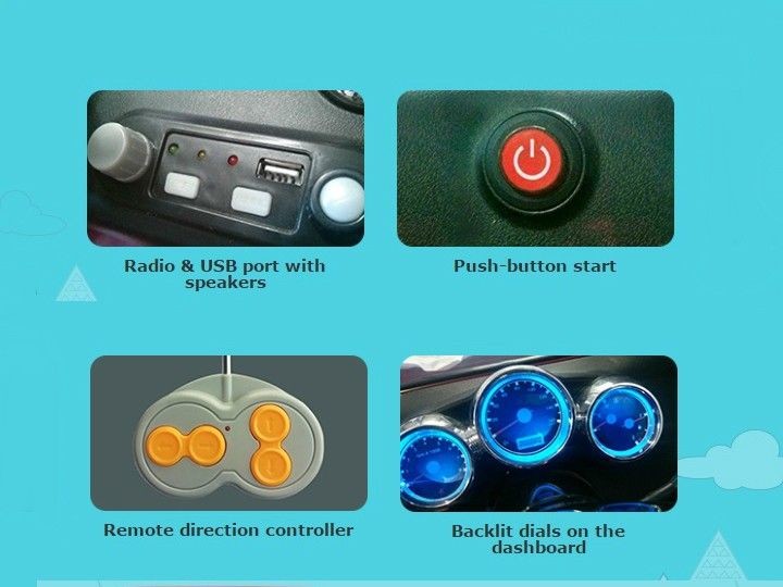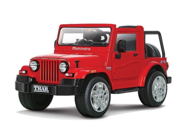 The Thar Ride-On is available in either Red or Napoli Black exterior colours. Features include working front and rear lights, plastic wheels with chrome wheel caps, rubber strips on the rear wheels for better grip, working doors, a plastic replica steering wheel, accelerator/brake foot pedals, a lever for forward/reverse, start/stop push button, a working radio with USB input and speakers, along with a faux, blue back-lit instrument cluster.