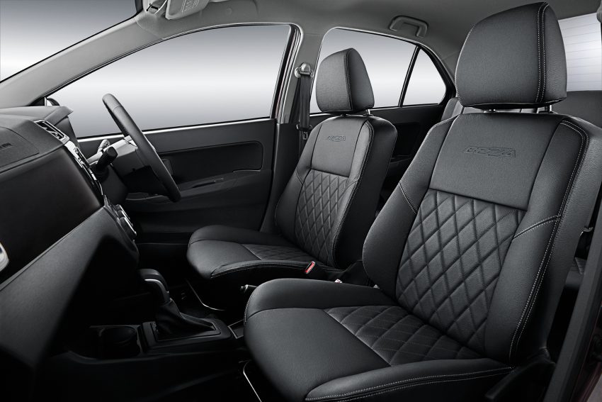 The Bezza is based on the same platform as the automaker’s Axia hatchback, and was developed at an investment of RM 300 million. The small sedan measures 4,150 mm long, 1,620 mm wide, 1,510 mm high, and shares its 2,455 mm wheelbase with the Axia. The Bezza’s boot volume is rated at 508 liters, which is almost 100 liters bigger than the Proton Saga’s boot, its nearest competitor.