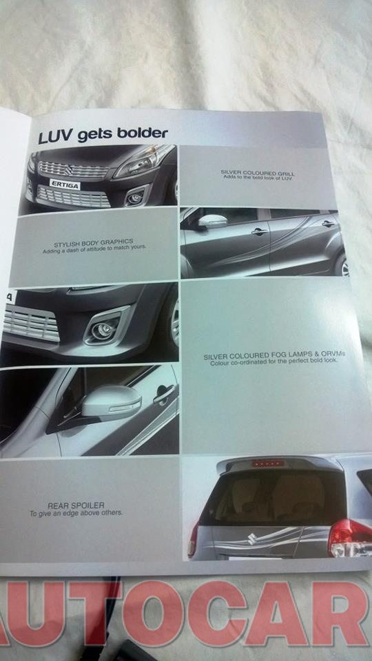On the exterior the Ertiga Feliz gets rear parking sensors with digital display, silver coloured grille and fog lamp inserts and outside rear view mirrors, rear spoiler and special body graphics.