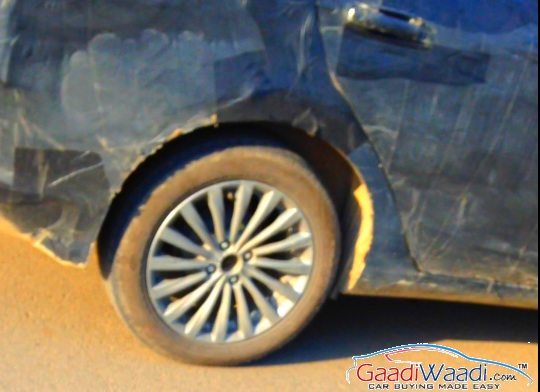 The Maruti Suzuki Ciaz will ride on the same platform that underpins the Ertiga MPV. Powering the Ciaz will be the 1.4 liter petrol and the 1.3 liter diesel engines from the Ertiga MPV. Unlike the international model, the India spec Ciaz won’t get dual exhaust pipes. As can be seen in the pic, Maruti has fitted a reflector in place of the exhaust pipe.