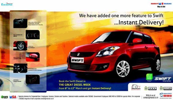 In a move that should bring in a lot of buyers to the nation’s largest selling car maker, Maruti is offering instant delivery on purchasing of the very popular Swift Diesel. A certain number of Swift diesel vehicles have been made available for ready delivery in every MSIL dealership and the deliveries would be done on a first-come-first-serve basis.