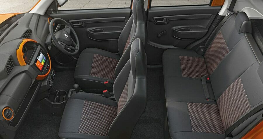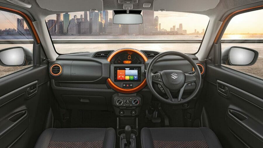 The images released by the company reveals that the S-Presso gets all-black interiors with orange accents and a centrally positioned instrument cluster. Maruti’s SmartPlay Studiotouchscreen infotainment system sits just beneath that display. A large circular outline adds colour to the cabin and does mimic how things appear inside the Mini Cooper. Central AC vents occupy space right at the top of the dashboard, while manual AC controls and charging and input sockets sit beneath them. The steering wheel is similar to the one we’ve seen on the Wagon R and some other Maruti models. Top variants, as suggested, will get audio and telephony controls. Other features include manually adjustable wing mirrors and front power windows with controls mounted on the dashboard.