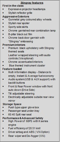 Maruti Suzuki Stingray features, details, price and images from the launchNews / By Amit Chhangani / August 21, 2013 / 3 minutes of reading Maruti Suzuki Stingray Image Gallery Pages: 1 2