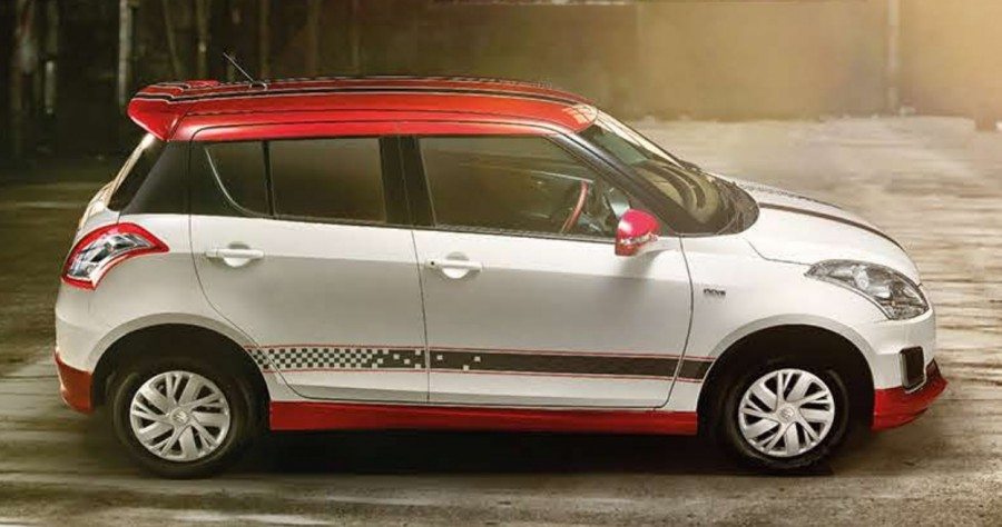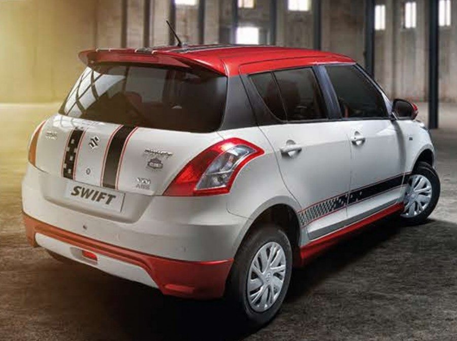 On the outside, the Swift Glory edition comes fitted with side skirts and bumper extensions finished in contrasting red color, blacked out C-pillars, a contrasting red roof and mirror caps, a new rear spoiler, along with racing stripes on the sides, bonnet and roof.