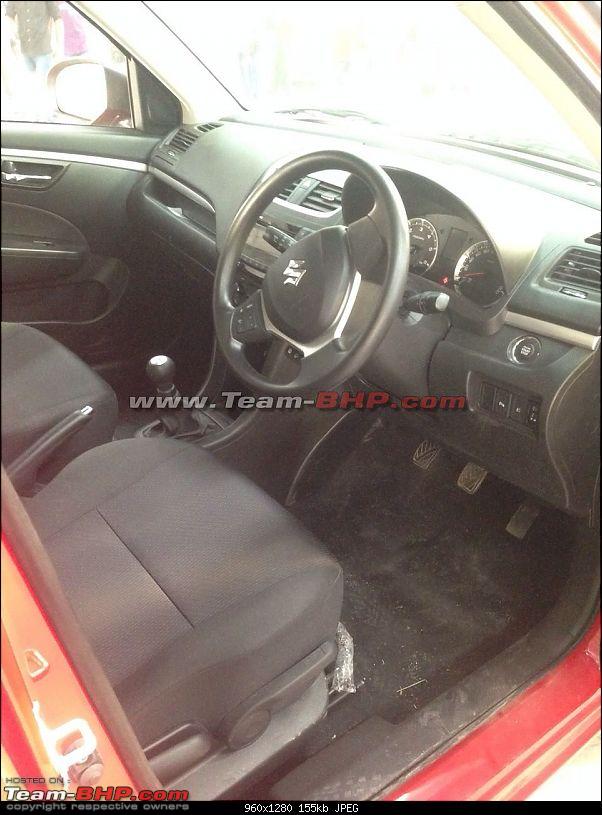 As can be seen the images, the Maruti Swift facelift gets Daytime Running Lights. The lower air dam is now a bit larger in size and the car also gets new alloy wheels. The exterior changes to car are limited to these. Maruti Suzuki will be adding a few more gadgetry to the car to have an upper hand over the competition. The Swift sold in other markets gets rear disc brakes too which might be offered on the India-spec model too. The engine start/stop button is clearly visible in the interior pic here.