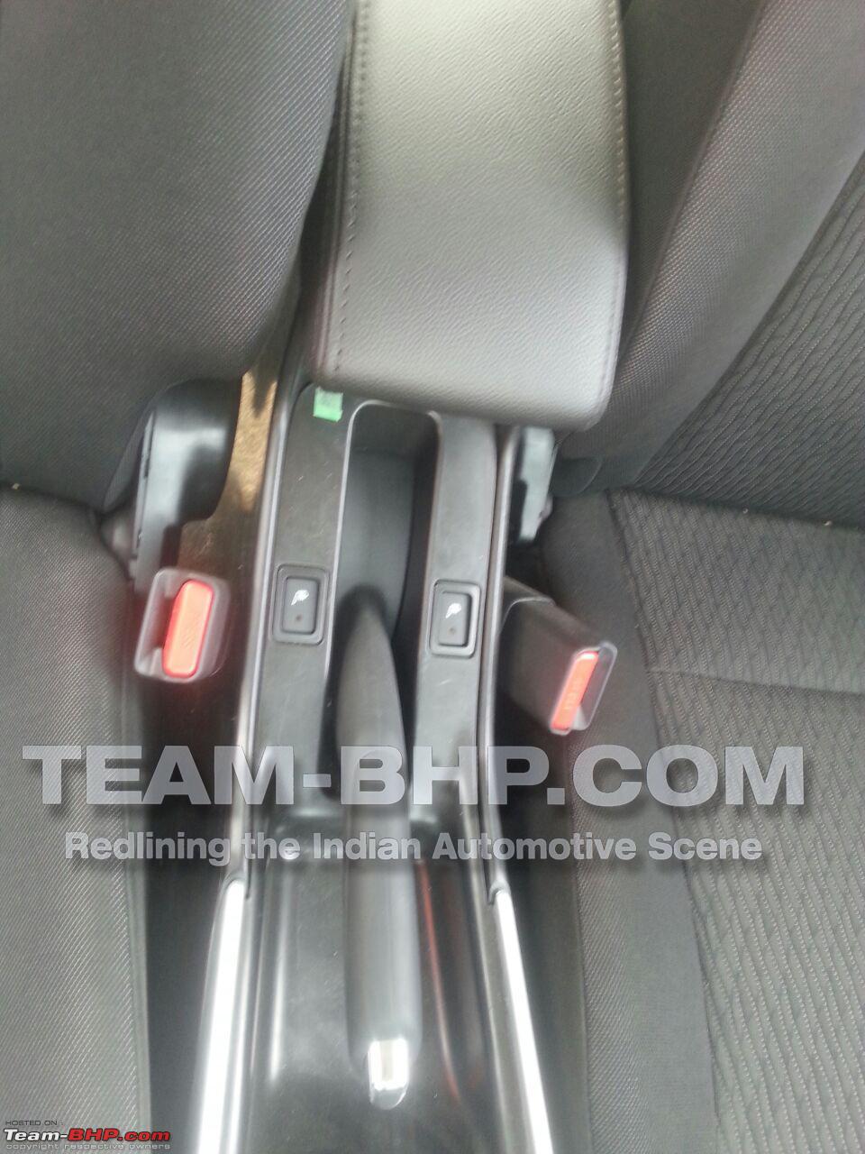 Fabric trimmed front and back seats (below) look accommodating enough; with the rear bench getting individual seat belt mounts for three occupants and a 60:40 split.