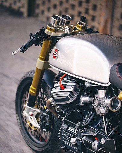 Visually, the stock CX500 will be completely overhauled. So while the fuel tank mimics the CX500’s original unit, it is tilted forward slightly. The solo seat is completed with non-slip upholstery and contrast stitching. Apart from visual changes, the finished motorcycle is claimed to be significantly lighter than stock machine.