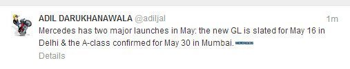 We recently reported that the Mercedes A Class might be launched in India ahead of its scheduled debut and much before monsoons. It has now emerged that the car might be launched in India at a launch event in Mumbai on May 30. The source of this info is a tweet by renowned Indian auto journalist Adil Darukhanawala.