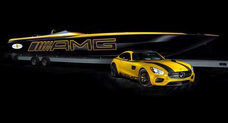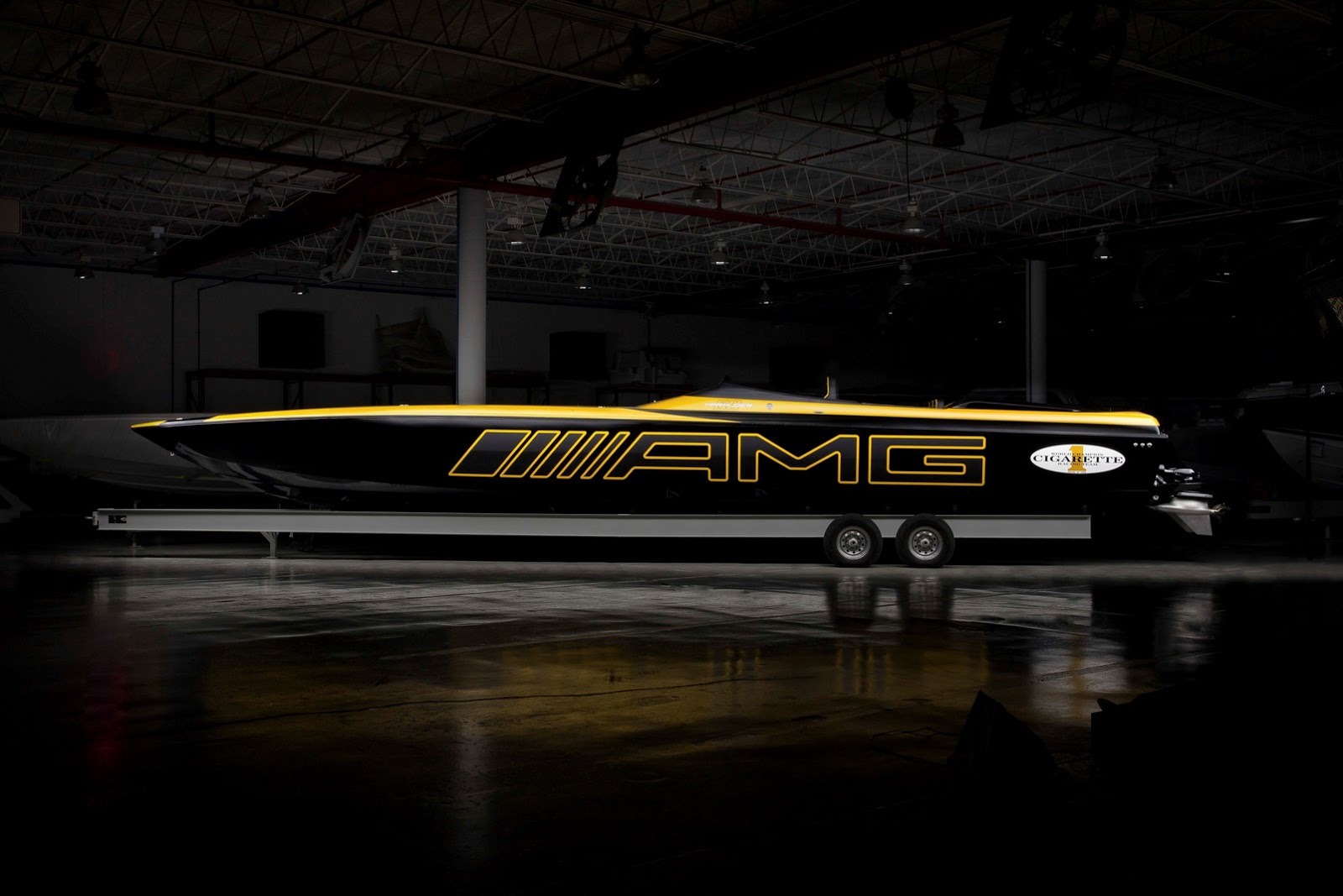 The Cigarette Racing 50 Marauder GT S Concept ditches the road-going Mercedes-AMG GT’s V8 in favor of two Mercury racing engines that allow it to reach speeds of more than 217km/h – on water!